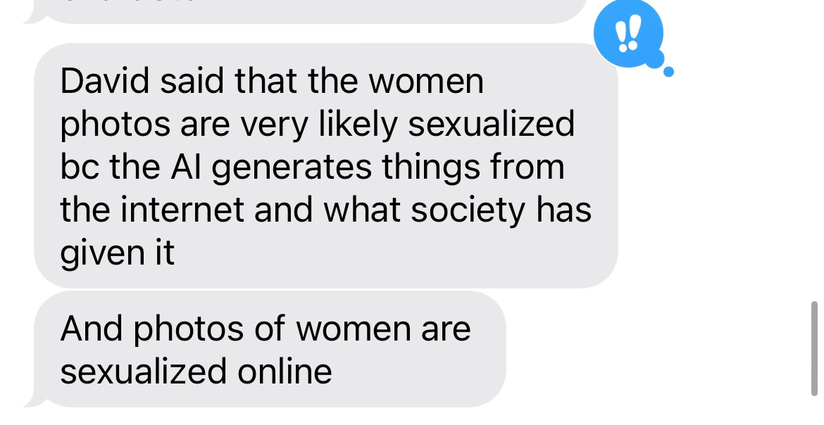Ultimately, AI technology isn’t more intelligent than humans. It doesn’t create new (objective) ways of looking at people or things. It can’t generate anything that other than combinations of existing ideas/images/etc that it’s exposed to. It, instead, reflects the real world. It picks up on the thought patterns that we follow, it highlights the subconscious that our society operates under. It’s a mirror, pointed at us.